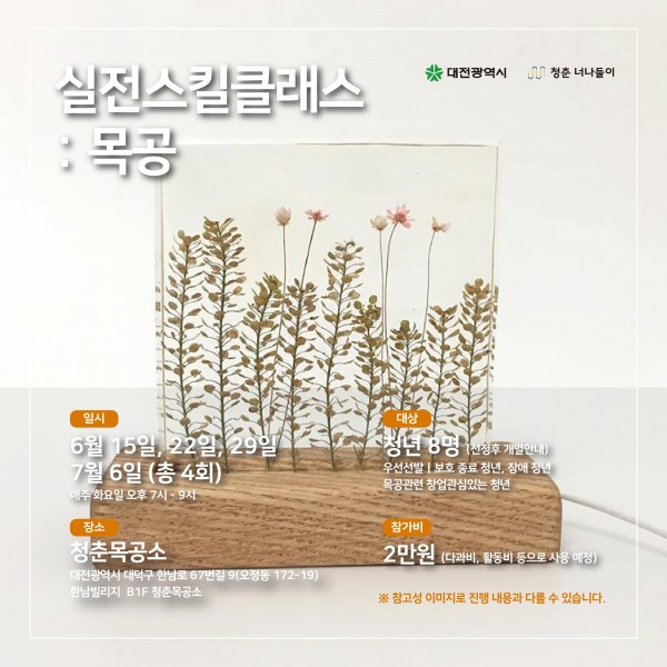 [청춘목공소 DIY CAFE] D I Y 취미반 모집 합니다